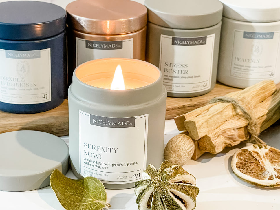 MORE ABOUT NICELYMADE CO.NICELYMADE scented candles are non-toxic, phthalate free, and sustainable. Each candle is hand-poured in Ohio using our premium natural wax blend of soy, coconut and apricot cream paired with a crackling wooden wick. Our unique, sophisticated and highly complex, fragrance and essential oil blends are designed and crafted to evoke memories and emotions known as the PROUSTIAN EFFECT.